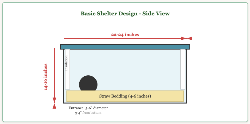Size matters: A shelter should be large enough for a cat to stand up, turn around, and lie down, but not so large that body heat dissipates. For multiple cats, bigger is fine—they’ll huddle together for warmth.